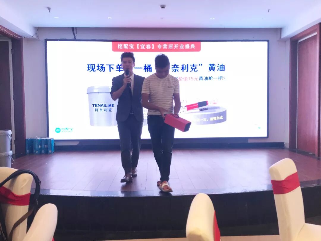 为感谢大家不远千里到场见证挖配宝的开业盛典,挖配宝为现场嘉宾推出了“特惠黄油”活动:现场嘉宾购一桶特奈利克黄油就送黄油枪一把!截止到会议结束,宜春专营店已成交53个订单!